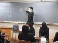 通常の授業ではなかなか聞くことのできない説明に対し,1年生の生徒は興味をもってメモをとりながら真剣に聞いていたようです。
