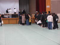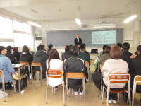 全体説明のあとは、クラス別説明会があり、その後、実習服の採寸や副教材・上靴などの物品販売がありました。