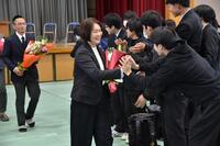 その後、生徒を代表し、生徒会役員による花束の贈呈がありました。
